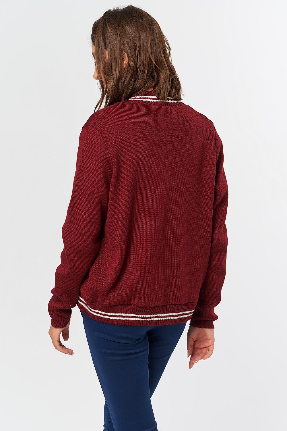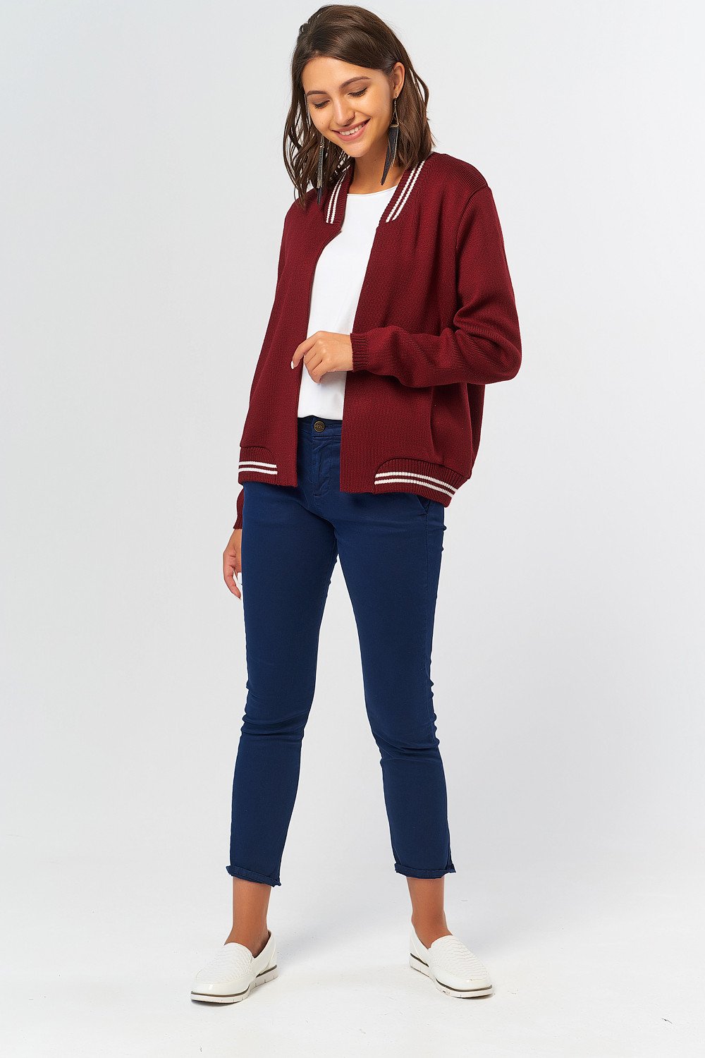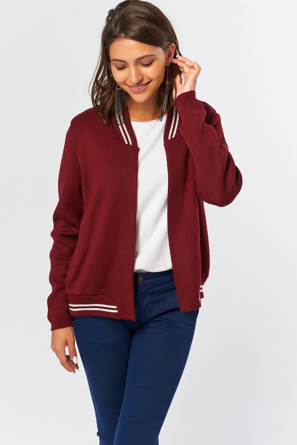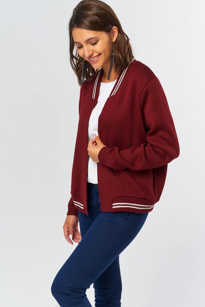 • Особенности: Вязаный жакет свободного силуэта без застежки. Горловина и низ изделия оформлены контрастной резинкой.