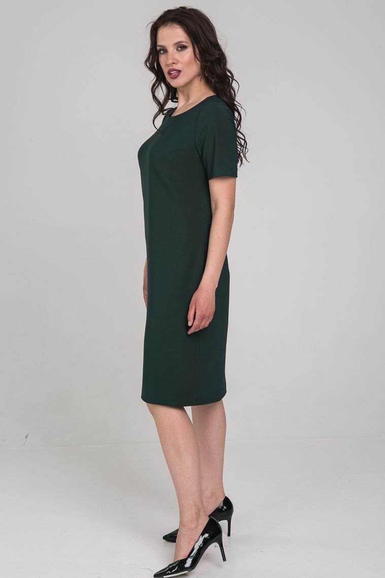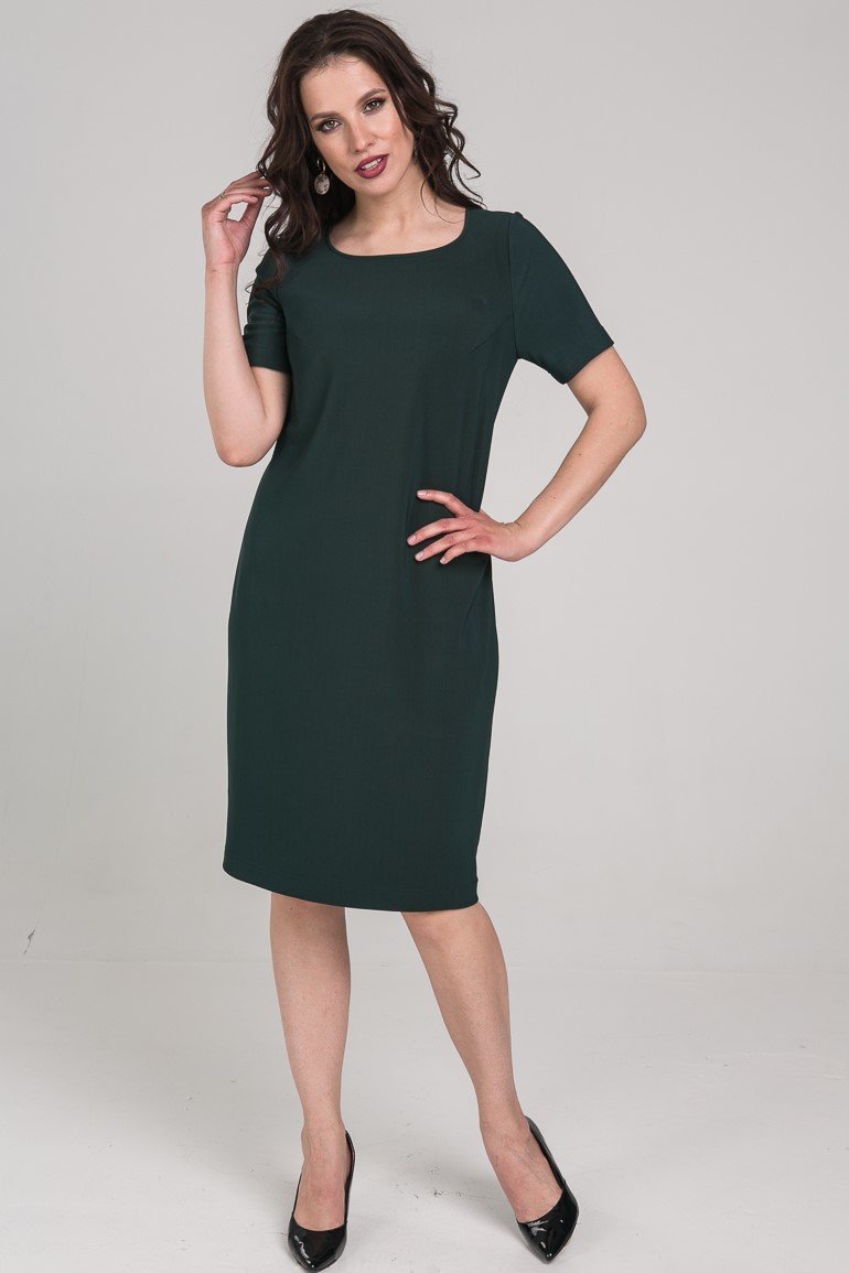 Платье женское из трикотажного полотна, полуприлегающего силуэта. Горловина круглая, рукав втачной, короткий.
