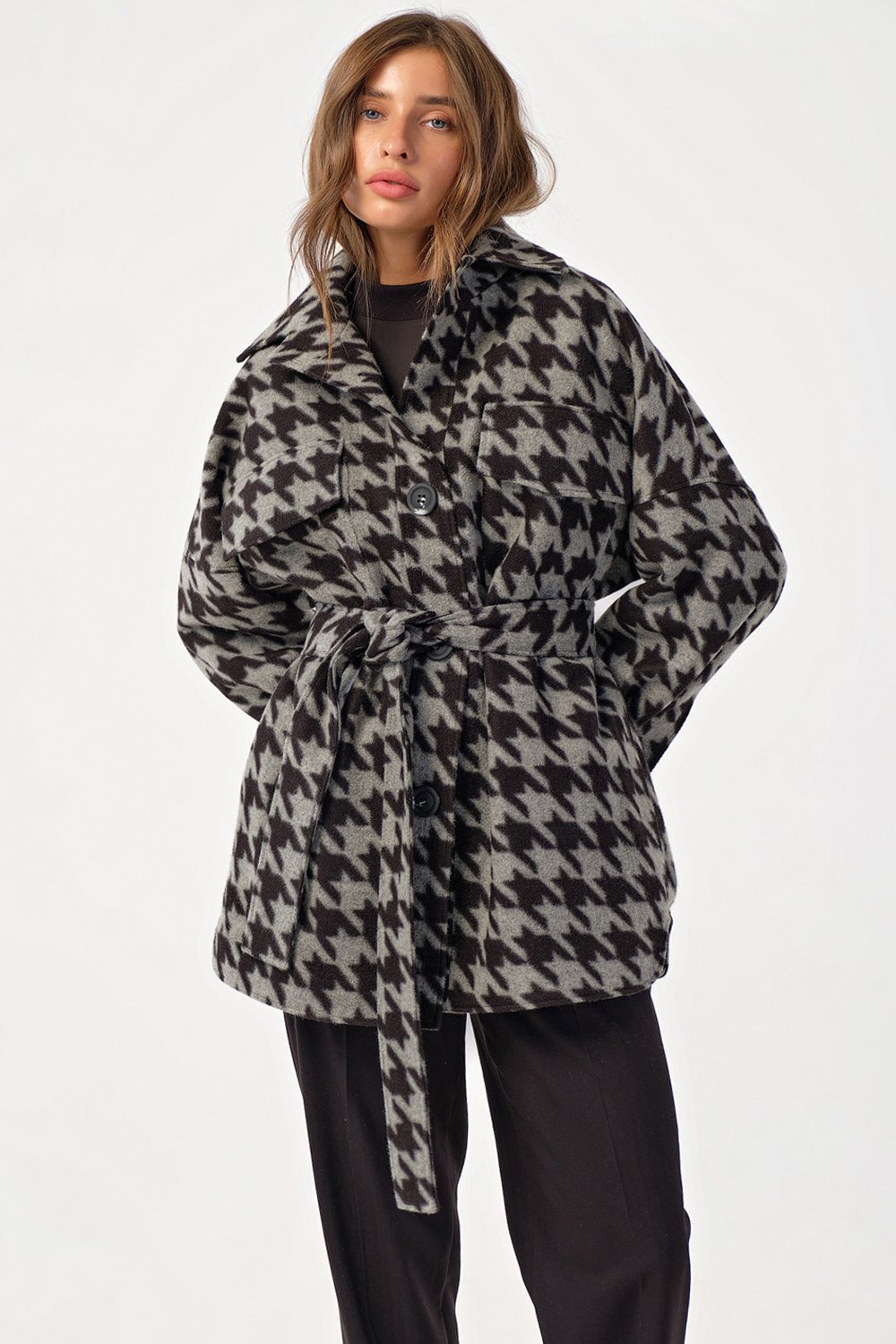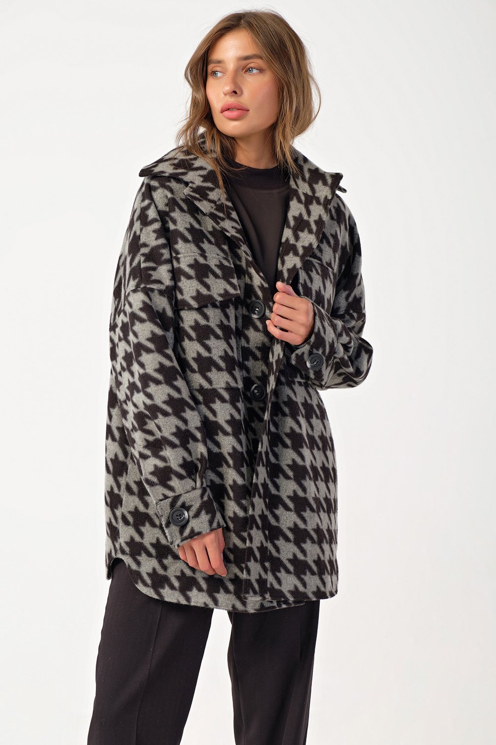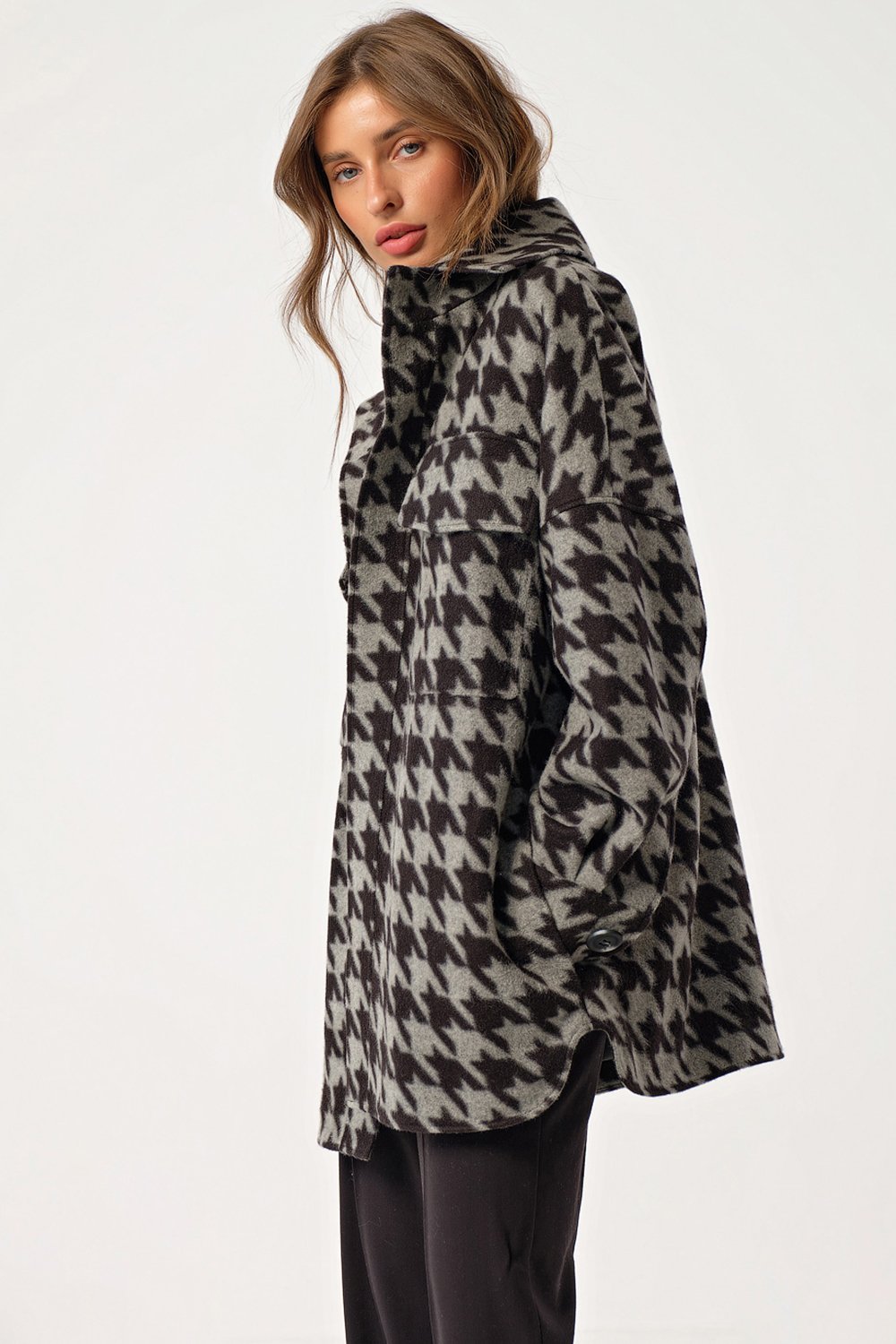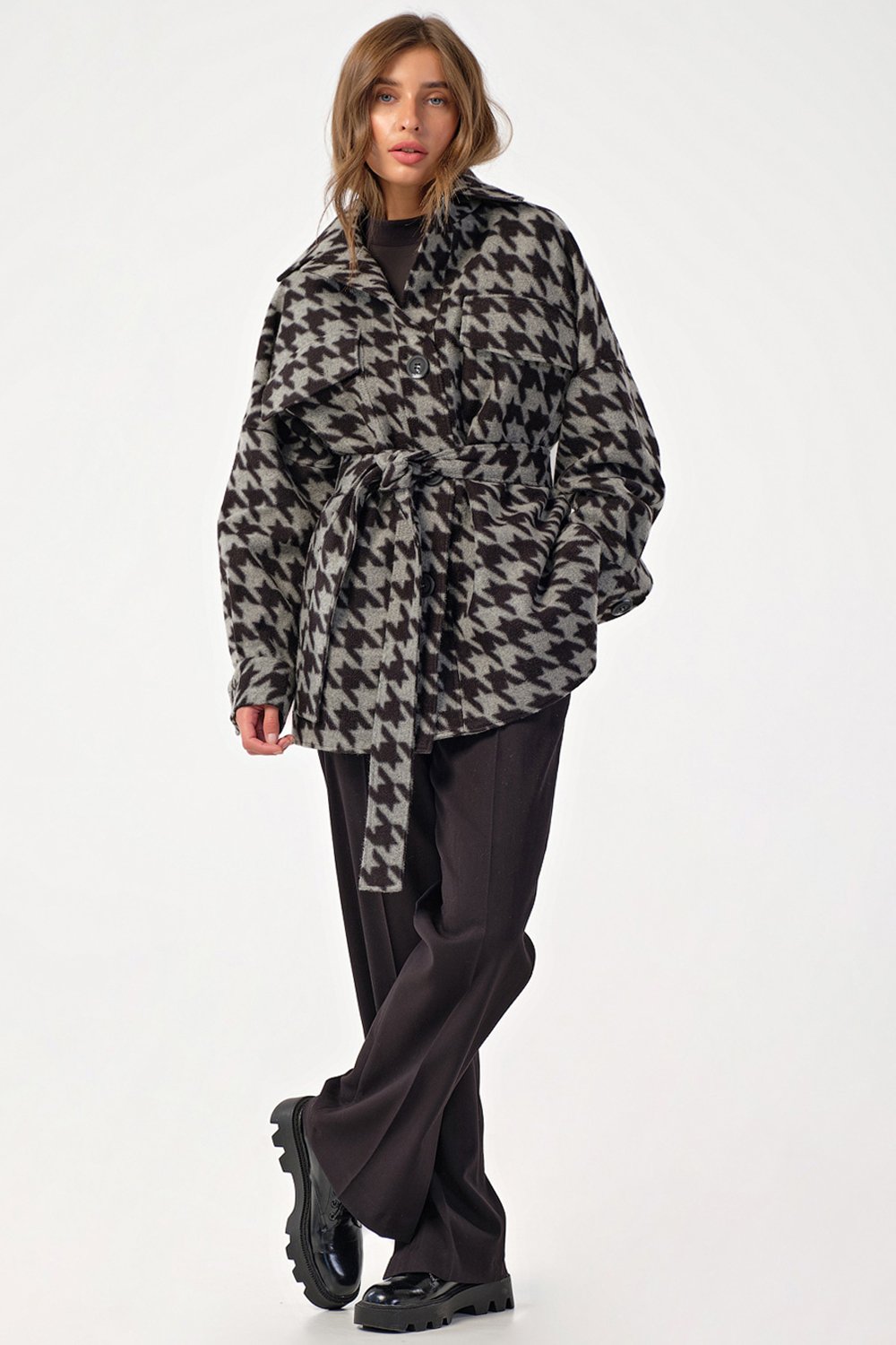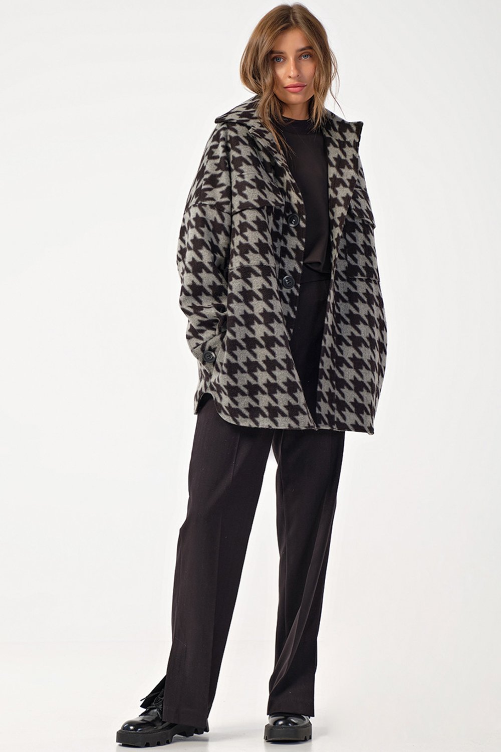 • Особенности: Пальто-рубашка прямого силуэта из пальтовой ткани на подкладке.