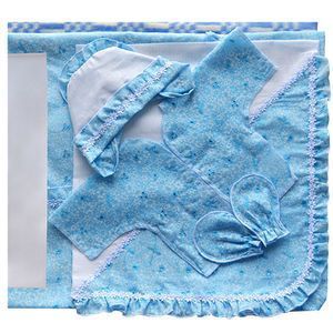 - комплект состоит из 7-х предметов: одеяло, пододеяльник, уголок, распашонка, чепчик, рукавички, лента.