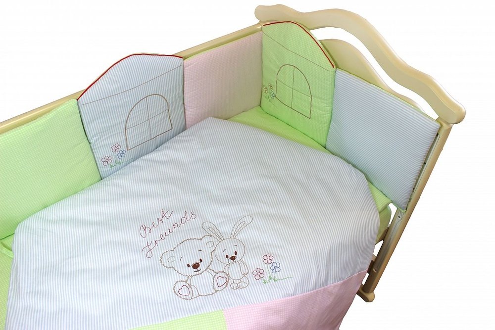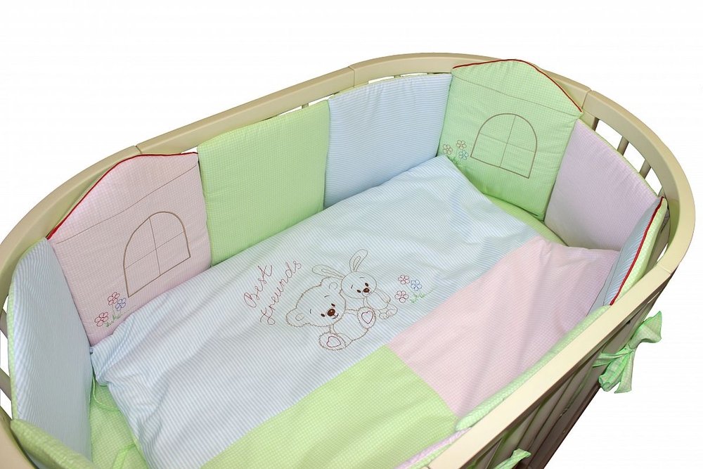 Комплект универсальный: прекрасный вариант для круглой и овальной кроватки новорожденным.