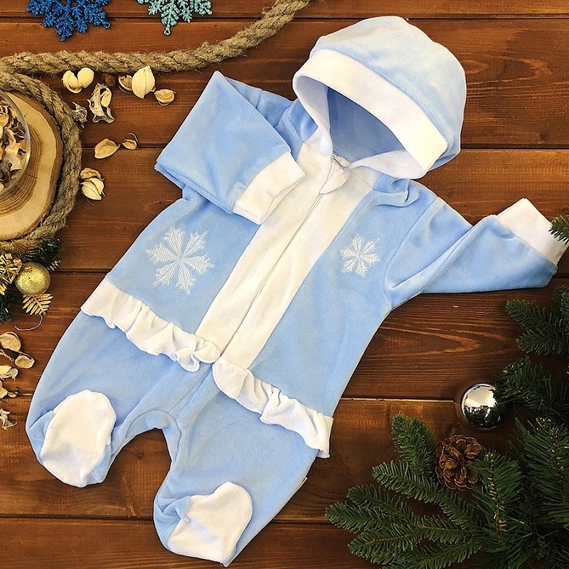 Комбинезон из велюра для новорожденной, имитирующий костюм Снегурочки.