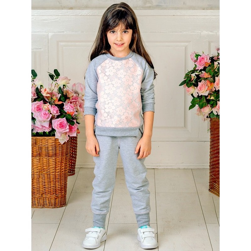 Костюм состоит из джемпера и штанишек. Ткань комплекта петлевой футер с содержанием лайкры.